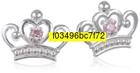 Disney Princess Sterling Silver Pink Crown Shaped Stud Earrings